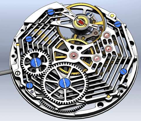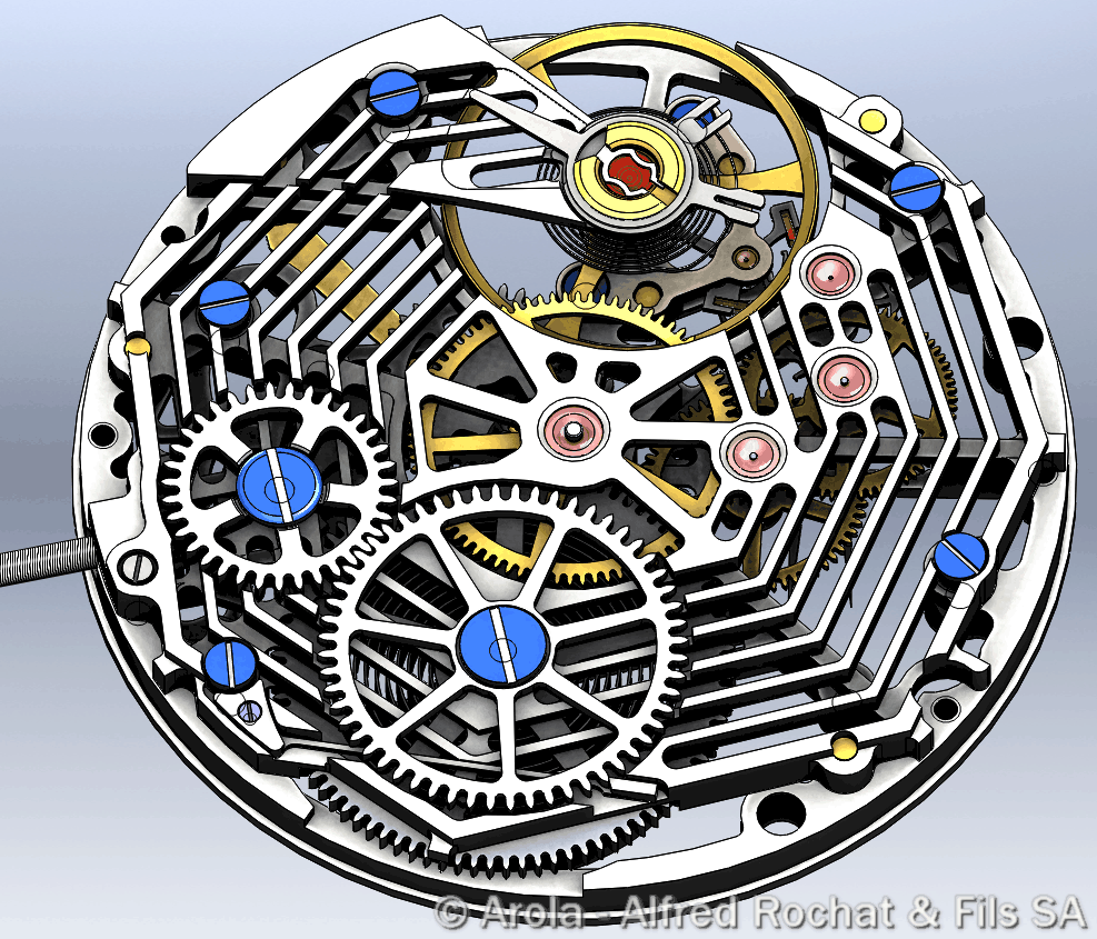 Spider web skeleton. This movement is equipped with a 3/4 bridge. The spider can also be on the bridge side.