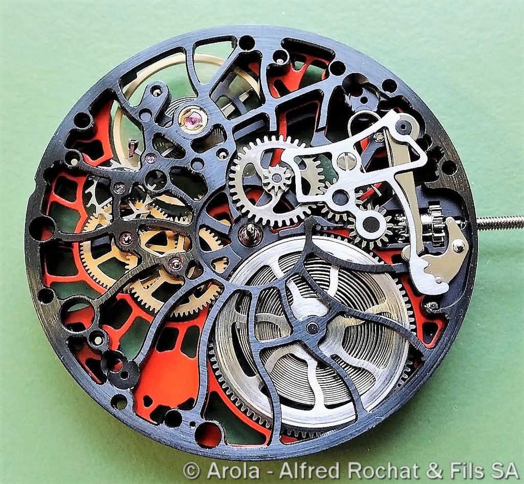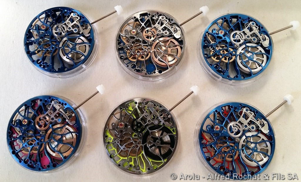 - Bleu , rouage rhodié et entretoise rouge.