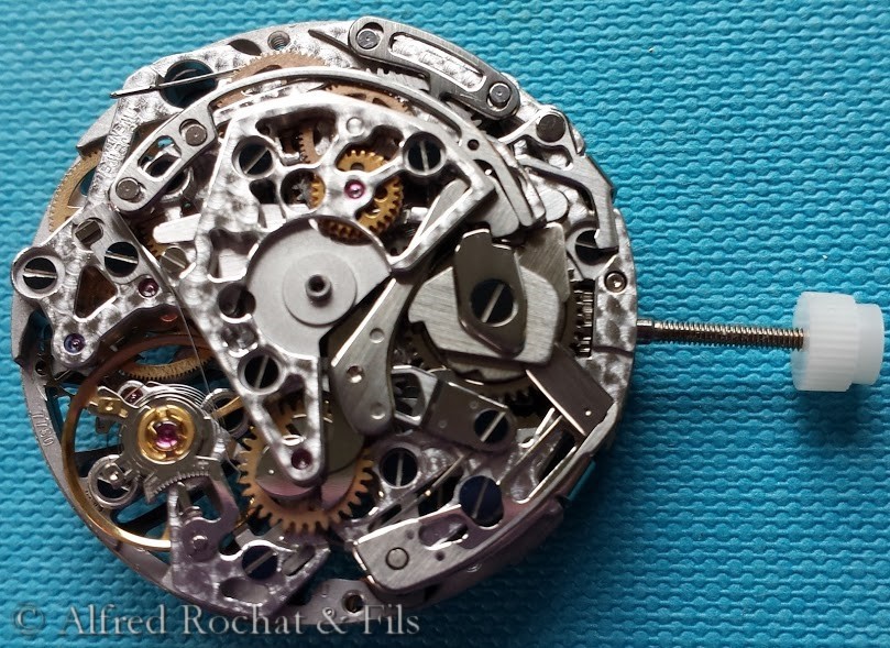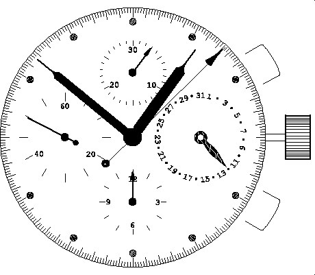 Chronograph Valjoux 7750 with the date pointer at 3 o'clock.