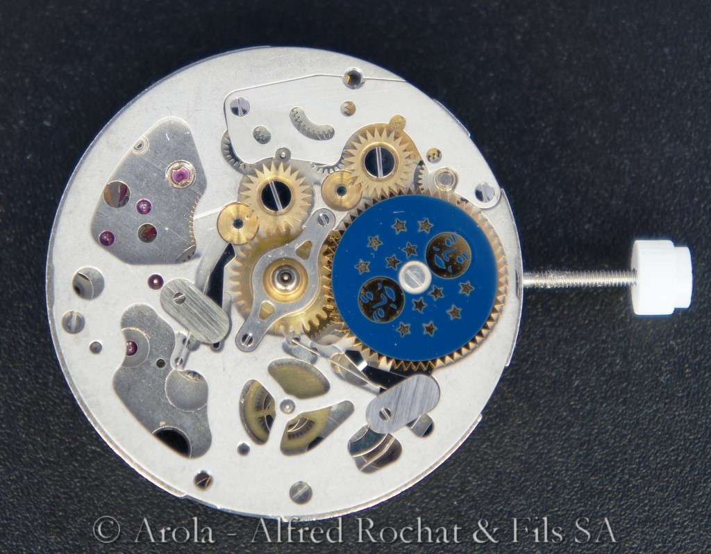 We sell separately some premounted modules of some of our complications. These modules simply replace the date module of the original template and require no changes to the movements. Simply remove the date module and mount the supplied module instead. We could suggest: