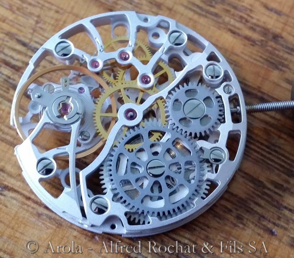 Ce mouvement squelette est basé sur le calibre Mavin 700. Il s'agit d'un calibre manuel ancien qui n'est plus en production depuis de longues années. Il est apparu dans les années 60. Ces caractéristiques principales sont les suivants: